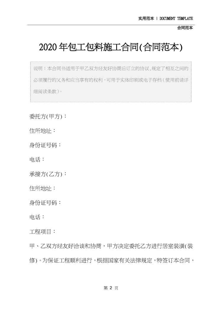 不久前,最新文档《2020年包工包料施工合同(合同范本)》全文正式在本站发布,感兴趣的用户可以下载阅读。 声明:本站所有文章,如无特殊说明或标注,均为本站原创发布。任何个人或组织,在未征得本站同意时,禁止复制、盗用、采集、发布本站内容到任何网站、书籍等各类媒体平台。如若本站内容侵犯了原著者的合法权益,可联系我们进行处理。