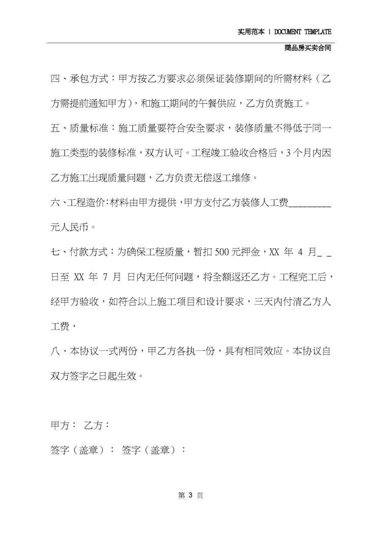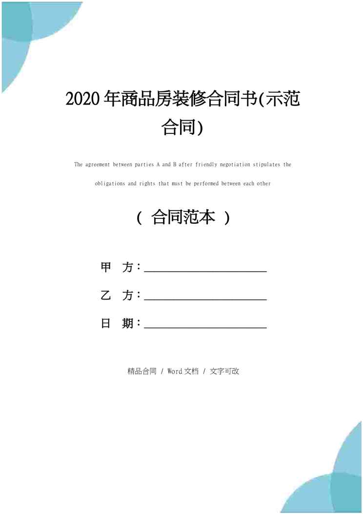 本站资深用户发布了最新的《2020年商品房装修合同书(示范合同)》文档,以下内容为预览,详细内容可下载阅读。 声明:本站所有文章,如无特殊说明或标注,均为本站原创发布。任何个人或组织,在未征得本站同意时,禁止复制、盗用、采集、发布本站内容到任何网站、书籍等各类媒体平台。如若本站内容侵犯了原著者的合法权益,可联系我们进行处理。