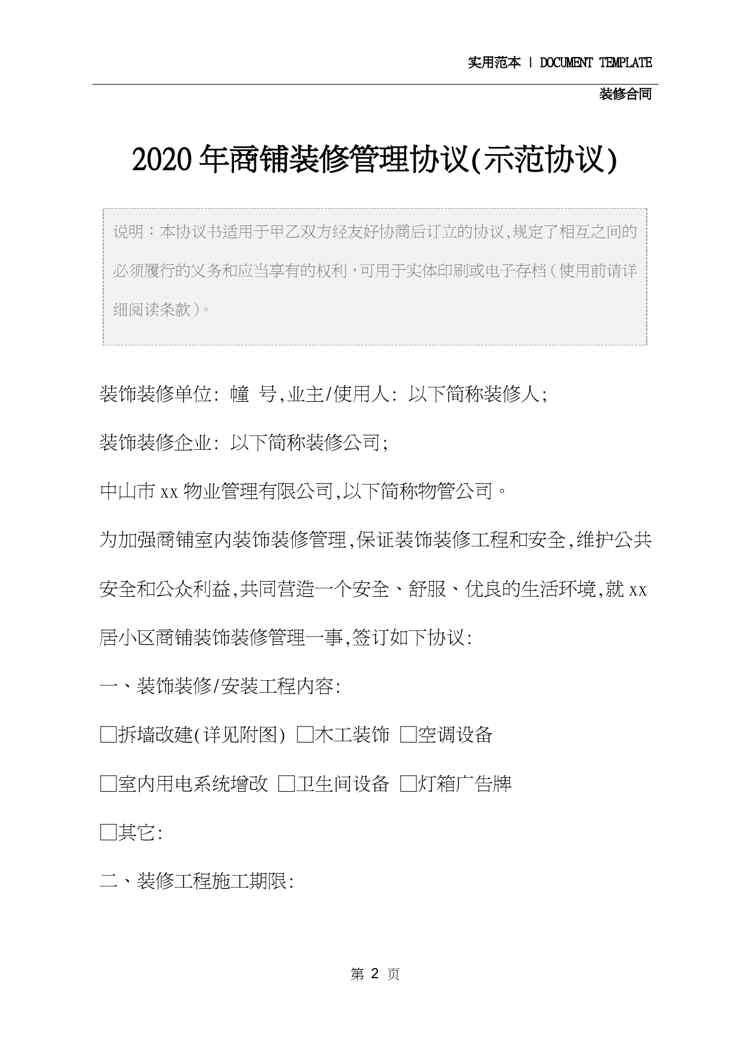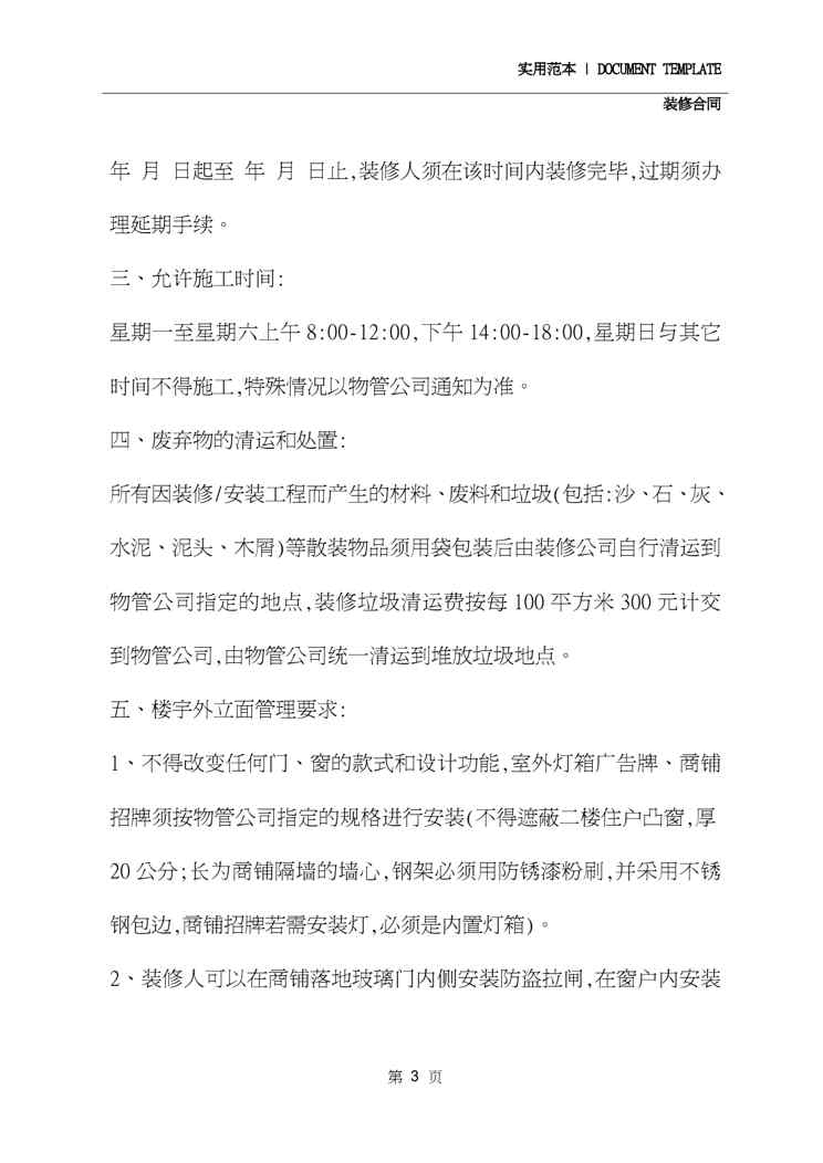 不久前,最新文档《2020年商铺装修管理协议(示范协议)》全文正式在本站发布,感兴趣的用户可以下载阅读。 声明:本站所有文章,如无特殊说明或标注,均为本站原创发布。任何个人或组织,在未征得本站同意时,禁止复制、盗用、采集、发布本站内容到任何网站、书籍等各类媒体平台。如若本站内容侵犯了原著者的合法权益,可联系我们进行处理。