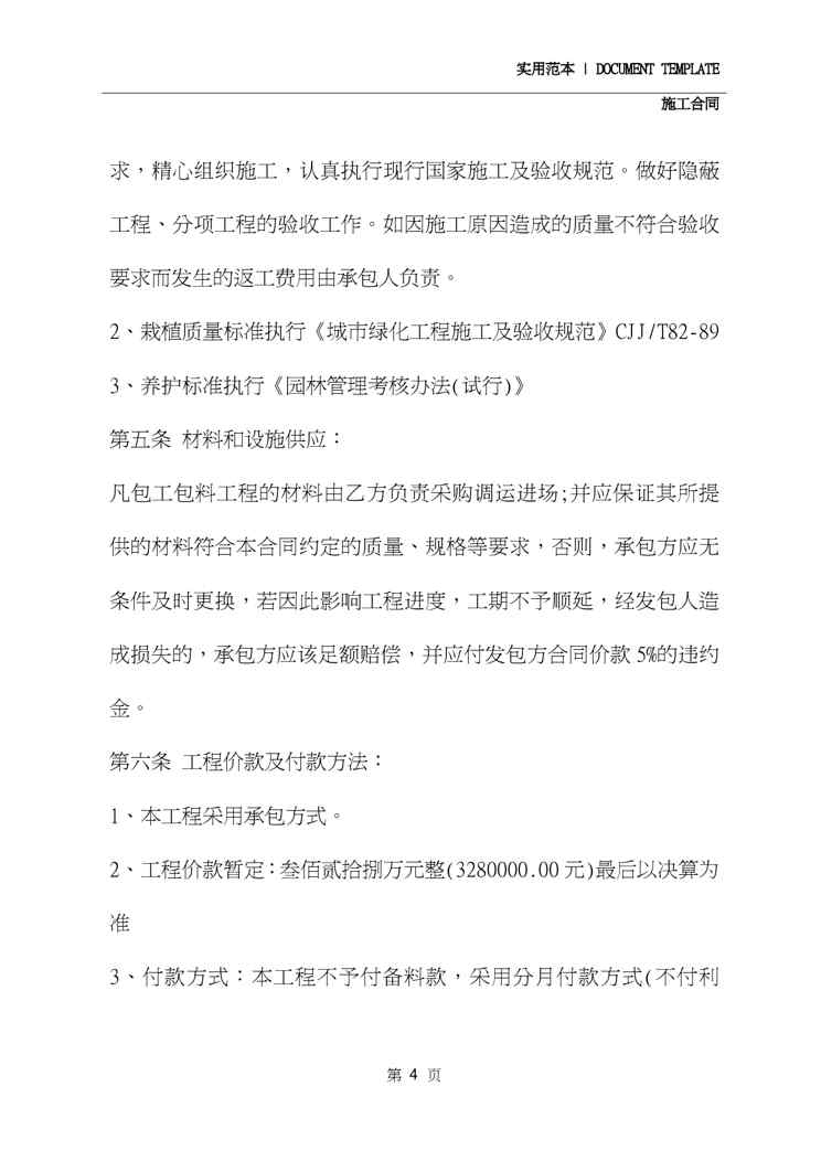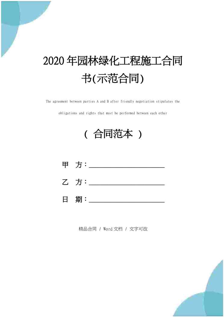 本站资深用户发布了最新的《2020年园林绿化工程施工合同书(示范合同)》文档,以下内容为预览,详细内容可下载阅读。 声明:本站所有文章,如无特殊说明或标注,均为本站原创发布。任何个人或组织,在未征得本站同意时,禁止复制、盗用、采集、发布本站内容到任何网站、书籍等各类媒体平台。如若本站内容侵犯了原著者的合法权益,可联系我们进行处理。