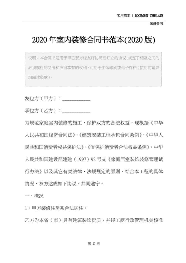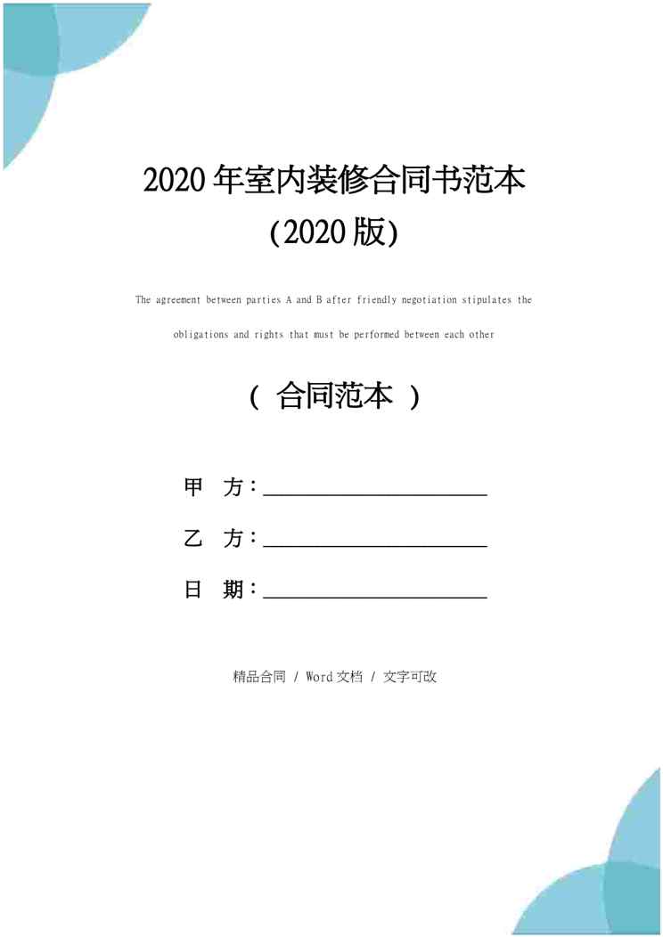 不久前,最新文档《2020年室内装修合同书范本(2020版)》全文正式在本站发布,感兴趣的用户可以下载阅读。 声明:本站所有文章,如无特殊说明或标注,均为本站原创发布。任何个人或组织,在未征得本站同意时,禁止复制、盗用、采集、发布本站内容到任何网站、书籍等各类媒体平台。如若本站内容侵犯了原著者的合法权益,可联系我们进行处理。
