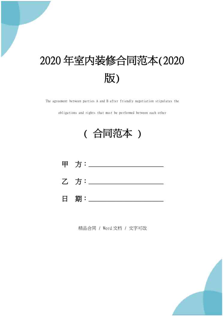 本站资深用户发布了最新的《2020年室内装修合同范本(2020版)》文档,以下内容为预览,详细内容可下载阅读。 声明:本站所有文章,如无特殊说明或标注,均为本站原创发布。任何个人或组织,在未征得本站同意时,禁止复制、盗用、采集、发布本站内容到任何网站、书籍等各类媒体平台。如若本站内容侵犯了原著者的合法权益,可联系我们进行处理。