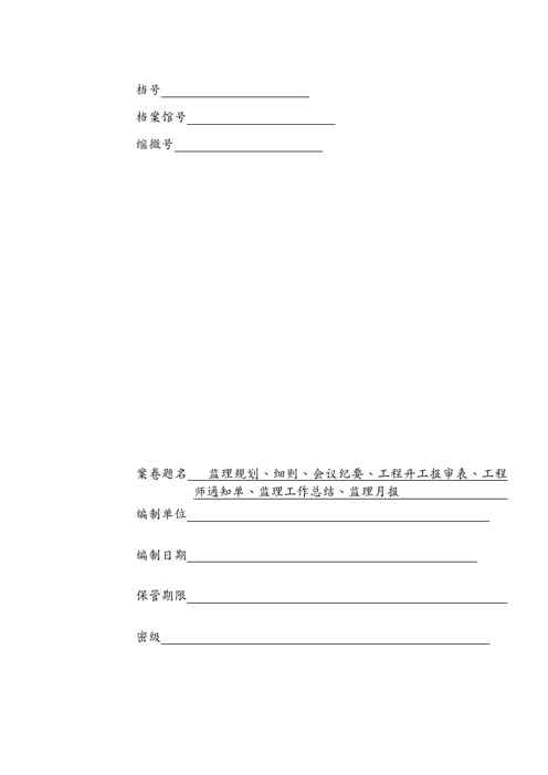 不久前,最新文档《{企业管理表格}监理单位企业标准工地用表汇总》全文正式在本站发布,感兴趣的用户可以下载阅读。 声明:本站所有文章,如无特殊说明或标注,均为本站原创发布。任何个人或组织,在未征得本站同意时,禁止复制、盗用、采集、发布本站内容到任何网站、书籍等各类媒体平台。如若本站内容侵犯了原著者的合法权益,可联系我们进行处理。