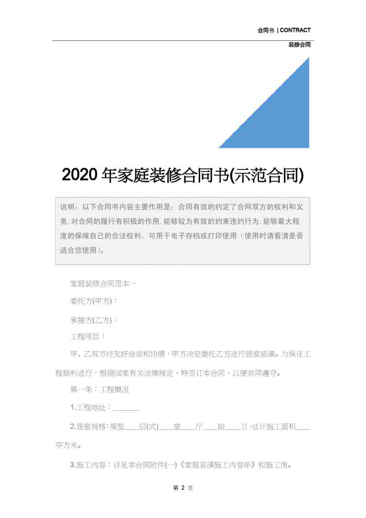 本站资深用户发布了最新的《2020年家庭装修合同书(示范合同)1609148795》文档,以下内容为预览,详细内容可下载阅读。 声明:本站所有文章,如无特殊说明或标注,均为本站原创发布。任何个人或组织,在未征得本站同意时,禁止复制、盗用、采集、发布本站内容到任何网站、书籍等各类媒体平台。如若本站内容侵犯了原著者的合法权益,可联系我们进行处理。