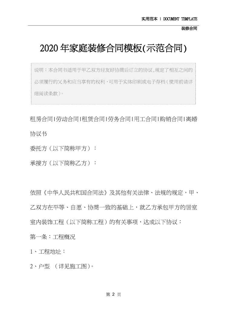 不久前,最新文档《2020年家庭装修合同模板(示范合同)》全文正式在本站发布,感兴趣的用户可以下载阅读。 声明:本站所有文章,如无特殊说明或标注,均为本站原创发布。任何个人或组织,在未征得本站同意时,禁止复制、盗用、采集、发布本站内容到任何网站、书籍等各类媒体平台。如若本站内容侵犯了原著者的合法权益,可联系我们进行处理。