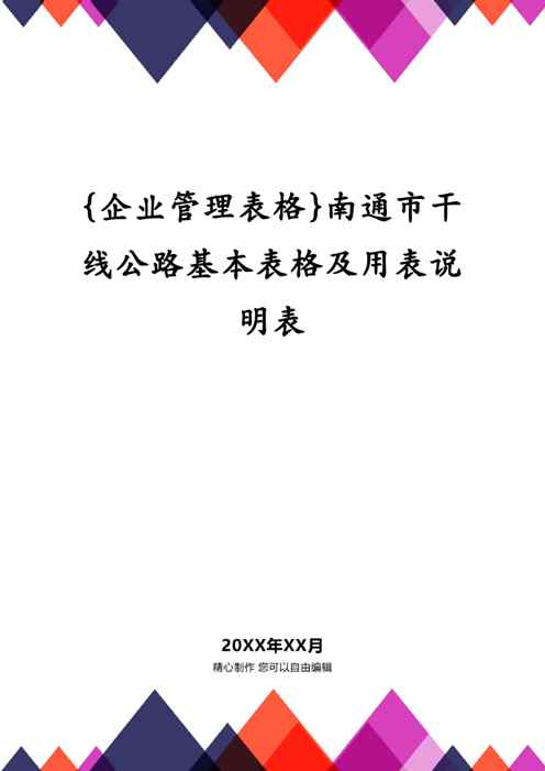 不久前,最新文档《{企业管理表格}南通市干线公路基本表格及用表说明表》全文正式在本站发布,感兴趣的用户可以下载阅读。 声明:本站所有文章,如无特殊说明或标注,均为本站原创发布。任何个人或组织,在未征得本站同意时,禁止复制、盗用、采集、发布本站内容到任何网站、书籍等各类媒体平台。如若本站内容侵犯了原著者的合法权益,可联系我们进行处理。