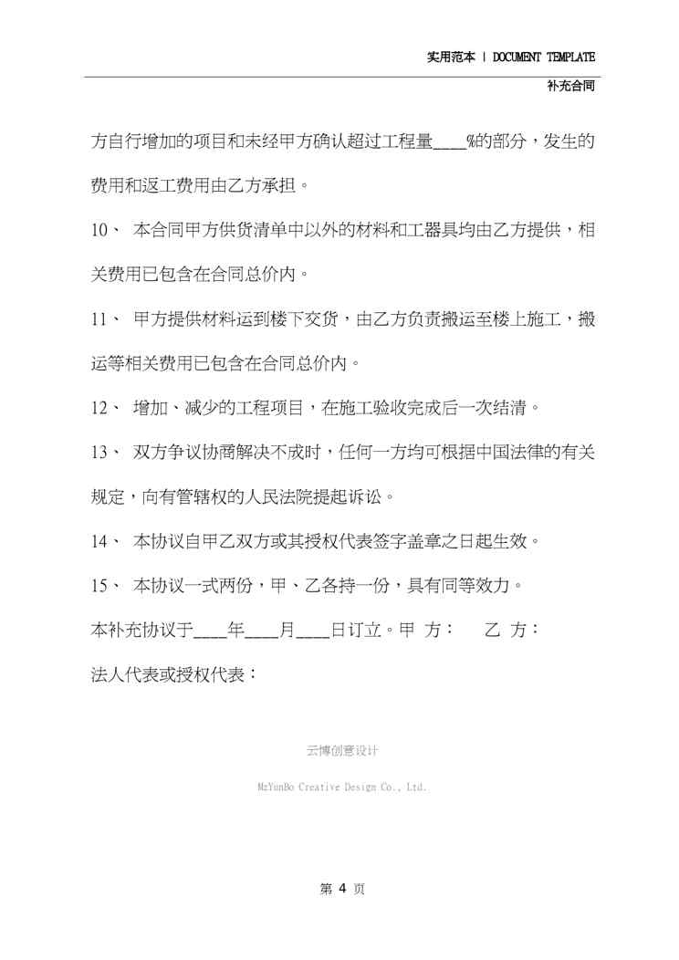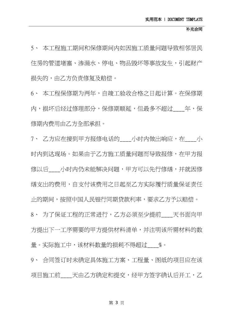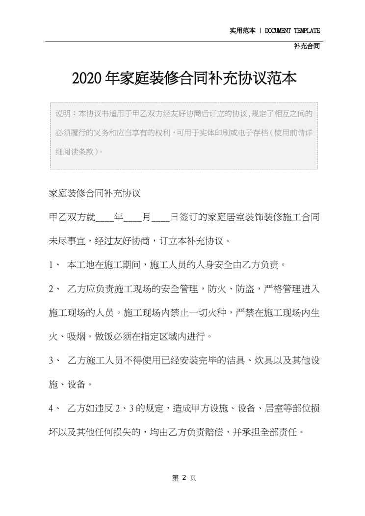 不久前,最新文档《2020年家庭装修合同补充协议范本》全文正式在本站发布,感兴趣的用户可以下载阅读。 声明:本站所有文章,如无特殊说明或标注,均为本站原创发布。任何个人或组织,在未征得本站同意时,禁止复制、盗用、采集、发布本站内容到任何网站、书籍等各类媒体平台。如若本站内容侵犯了原著者的合法权益,可联系我们进行处理。