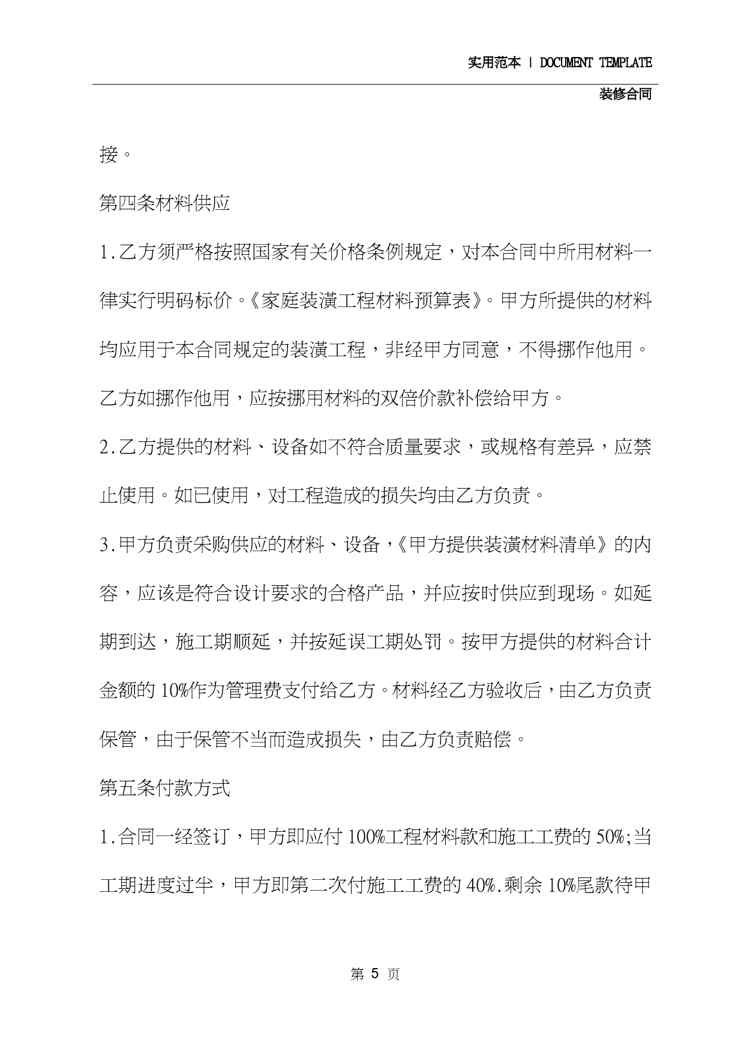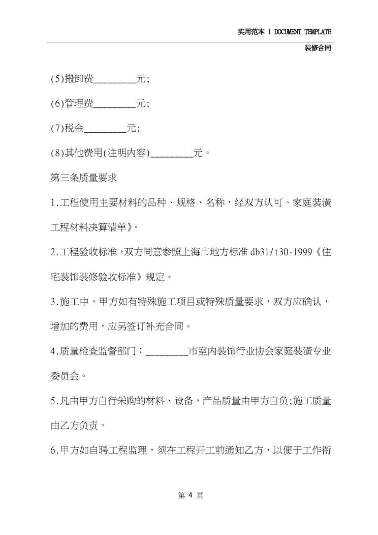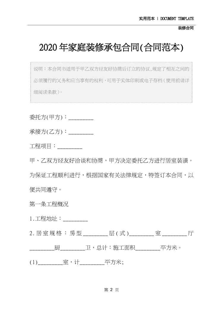 本站资深用户发布了最新的《2020年家庭装修承包合同(合同范本)》文档,以下内容为预览,详细内容可下载阅读。 声明:本站所有文章,如无特殊说明或标注,均为本站原创发布。任何个人或组织,在未征得本站同意时,禁止复制、盗用、采集、发布本站内容到任何网站、书籍等各类媒体平台。如若本站内容侵犯了原著者的合法权益,可联系我们进行处理。