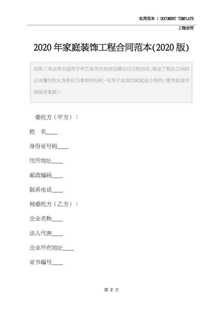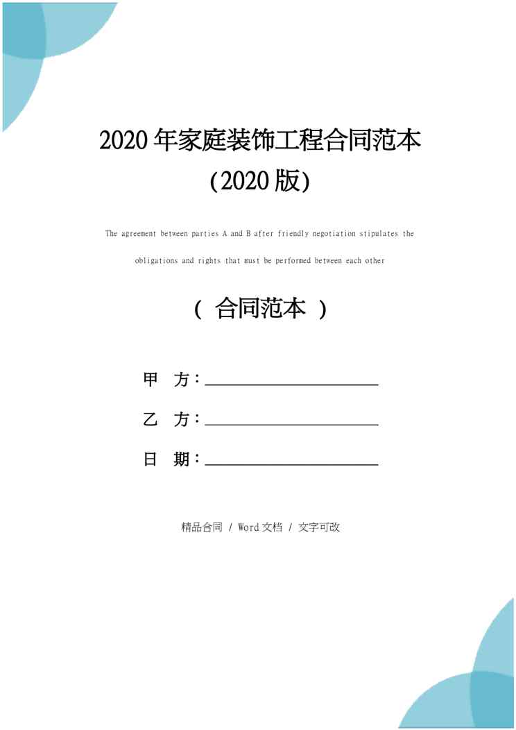 不久前,最新文档《2020年家庭装饰工程合同范本(2020版)》全文正式在本站发布,感兴趣的用户可以下载阅读。 声明:本站所有文章,如无特殊说明或标注,均为本站原创发布。任何个人或组织,在未征得本站同意时,禁止复制、盗用、采集、发布本站内容到任何网站、书籍等各类媒体平台。如若本站内容侵犯了原著者的合法权益,可联系我们进行处理。