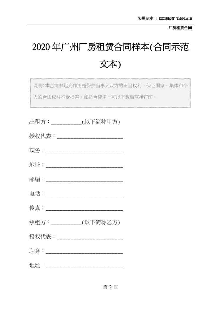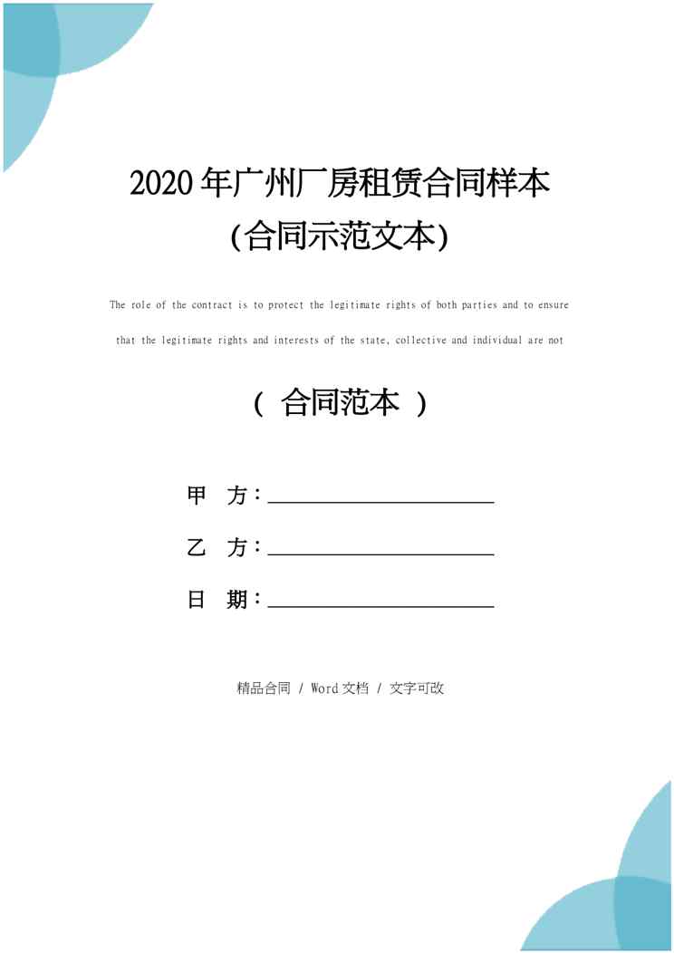 不久前,最新文档《2020年广州厂房租赁合同样本(合同范本)》全文正式在本站发布,感兴趣的用户可以下载阅读。 声明:本站所有文章,如无特殊说明或标注,均为本站原创发布。任何个人或组织,在未征得本站同意时,禁止复制、盗用、采集、发布本站内容到任何网站、书籍等各类媒体平台。如若本站内容侵犯了原著者的合法权益,可联系我们进行处理。