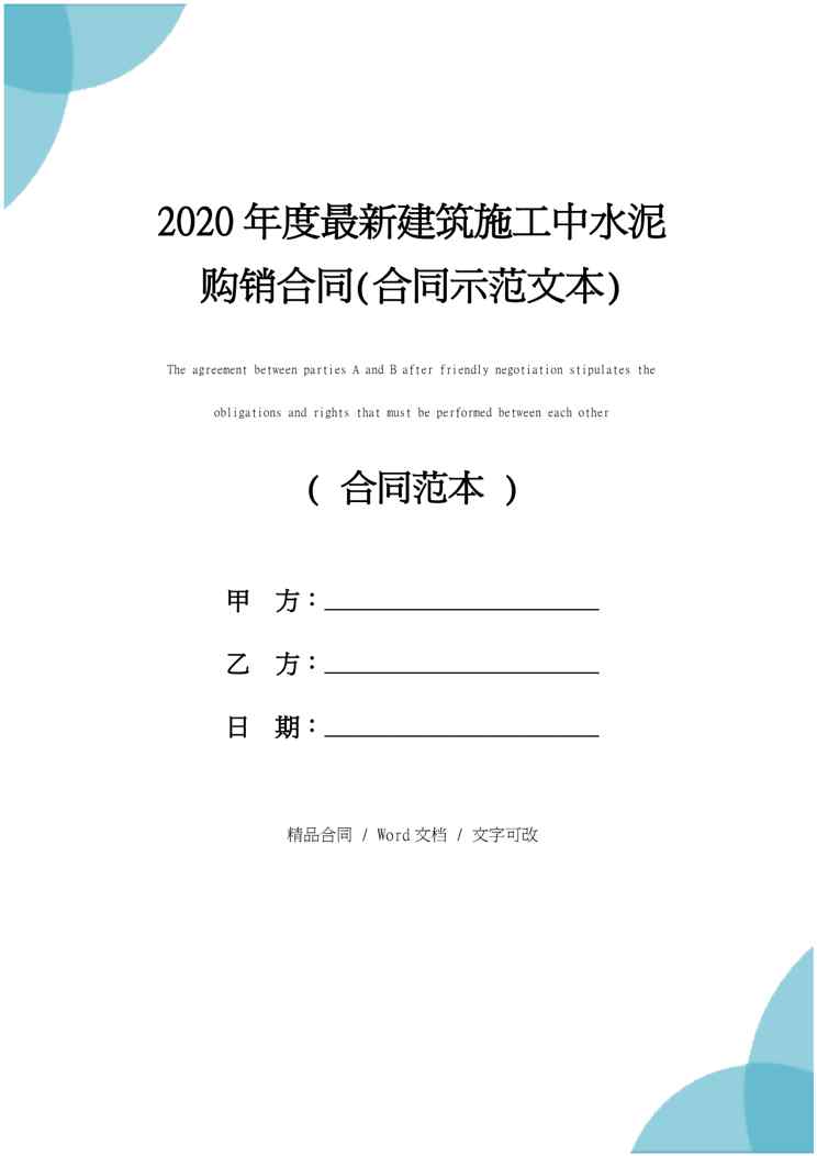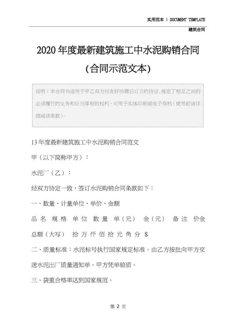 本站正式发布了《2020年度最新建筑施工中水泥购销合同(合同示范文本)》文档,文档详细内容可下载阅读。 声明:本站所有文章,如无特殊说明或标注,均为本站原创发布。任何个人或组织,在未征得本站同意时,禁止复制、盗用、采集、发布本站内容到任何网站、书籍等各类媒体平台。如若本站内容侵犯了原著者的合法权益,可联系我们进行处理。