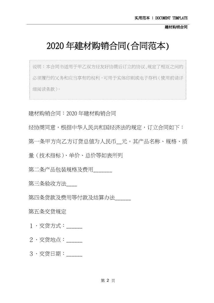 本站正式发布了《2020年建材购销合同(合同范本)》文档,文档详细内容可下载阅读。 声明:本站所有文章,如无特殊说明或标注,均为本站原创发布。任何个人或组织,在未征得本站同意时,禁止复制、盗用、采集、发布本站内容到任何网站、书籍等各类媒体平台。如若本站内容侵犯了原著者的合法权益,可联系我们进行处理。