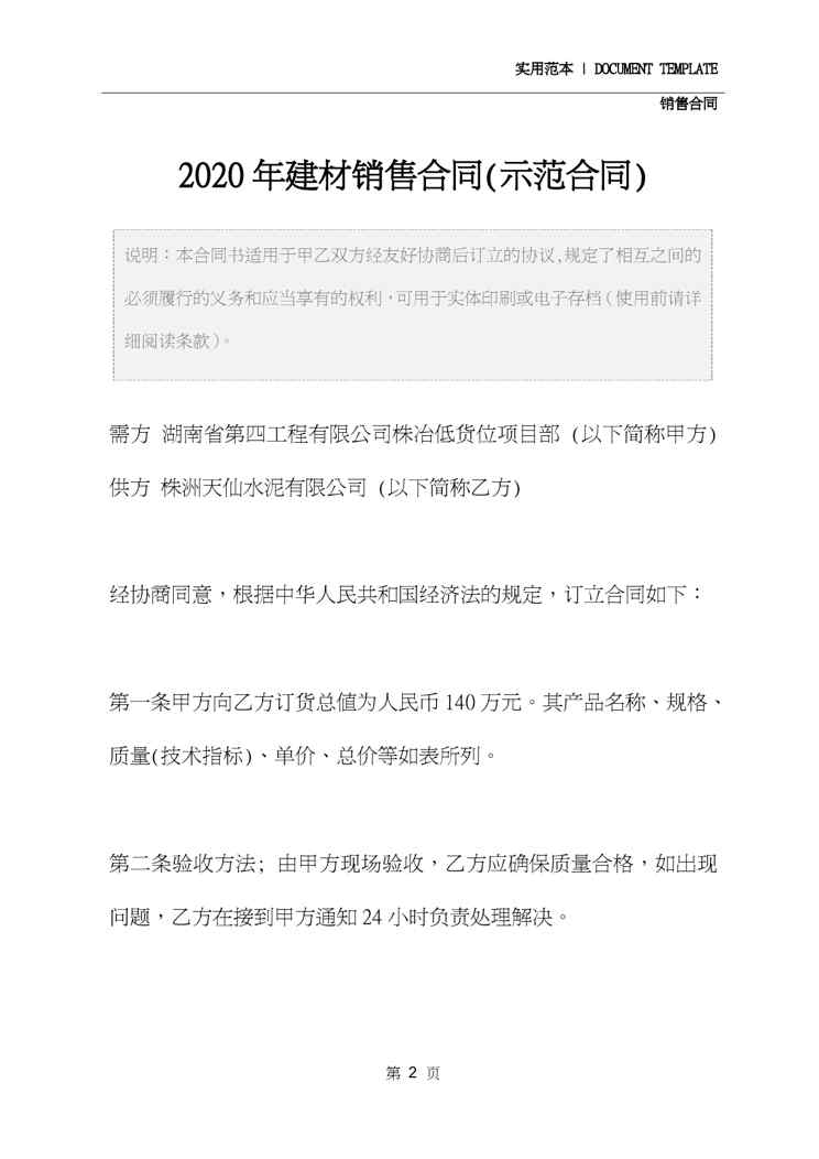 不久前,最新文档《2020年建材销售合同(示范合同)》全文正式在本站发布,感兴趣的用户可以下载阅读。 声明:本站所有文章,如无特殊说明或标注,均为本站原创发布。任何个人或组织,在未征得本站同意时,禁止复制、盗用、采集、发布本站内容到任何网站、书籍等各类媒体平台。如若本站内容侵犯了原著者的合法权益,可联系我们进行处理。