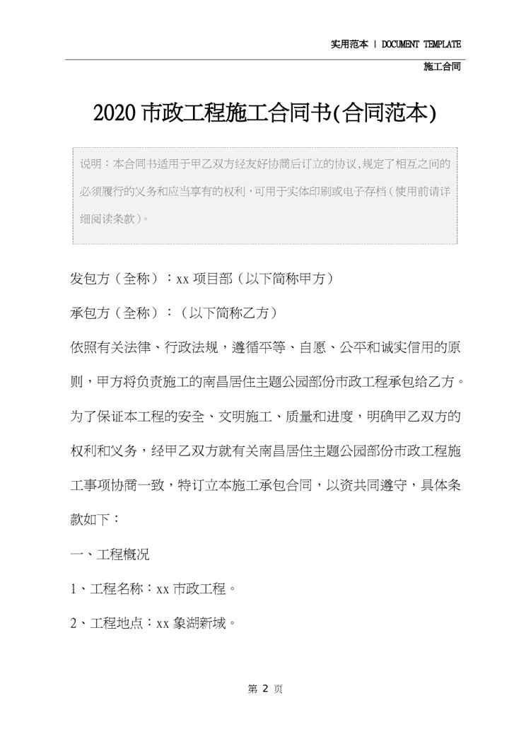 不久前,最新文档《2020市政工程施工合同书(合同范本)》全文正式在本站发布,感兴趣的用户可以下载阅读。 声明:本站所有文章,如无特殊说明或标注,均为本站原创发布。任何个人或组织,在未征得本站同意时,禁止复制、盗用、采集、发布本站内容到任何网站、书籍等各类媒体平台。如若本站内容侵犯了原著者的合法权益,可联系我们进行处理。