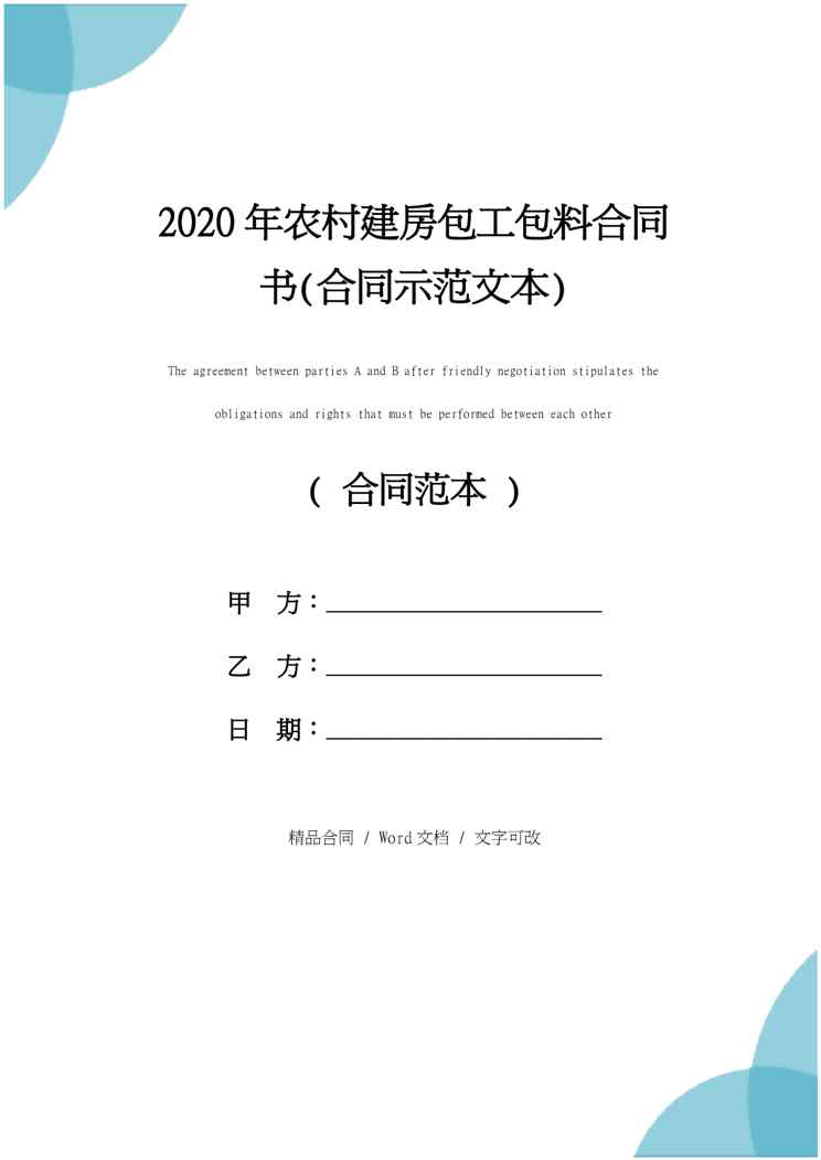 本站资深用户发布了最新的《2020年农村建房包工包料合同书(合同示范文本)》文档,以下内容为预览,详细内容可下载阅读。 声明:本站所有文章,如无特殊说明或标注,均为本站原创发布。任何个人或组织,在未征得本站同意时,禁止复制、盗用、采集、发布本站内容到任何网站、书籍等各类媒体平台。如若本站内容侵犯了原著者的合法权益,可联系我们进行处理。