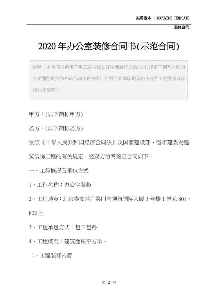 本站正式发布了《2020年办公室装修合同书(示范合同)》文档,文档详细内容可下载阅读。 声明:本站所有文章,如无特殊说明或标注,均为本站原创发布。任何个人或组织,在未征得本站同意时,禁止复制、盗用、采集、发布本站内容到任何网站、书籍等各类媒体平台。如若本站内容侵犯了原著者的合法权益,可联系我们进行处理。