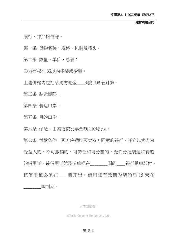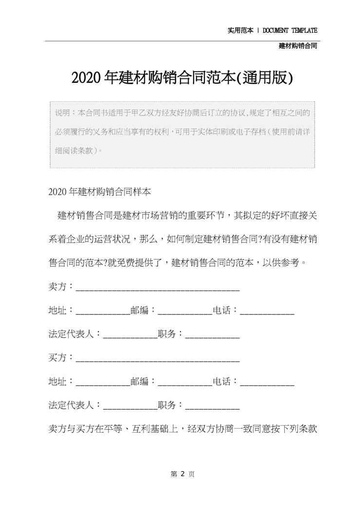 本站正式发布了《2020年建材购销合同范本(通用版)》文档,文档详细内容可下载阅读。 声明:本站所有文章,如无特殊说明或标注,均为本站原创发布。任何个人或组织,在未征得本站同意时,禁止复制、盗用、采集、发布本站内容到任何网站、书籍等各类媒体平台。如若本站内容侵犯了原著者的合法权益,可联系我们进行处理。