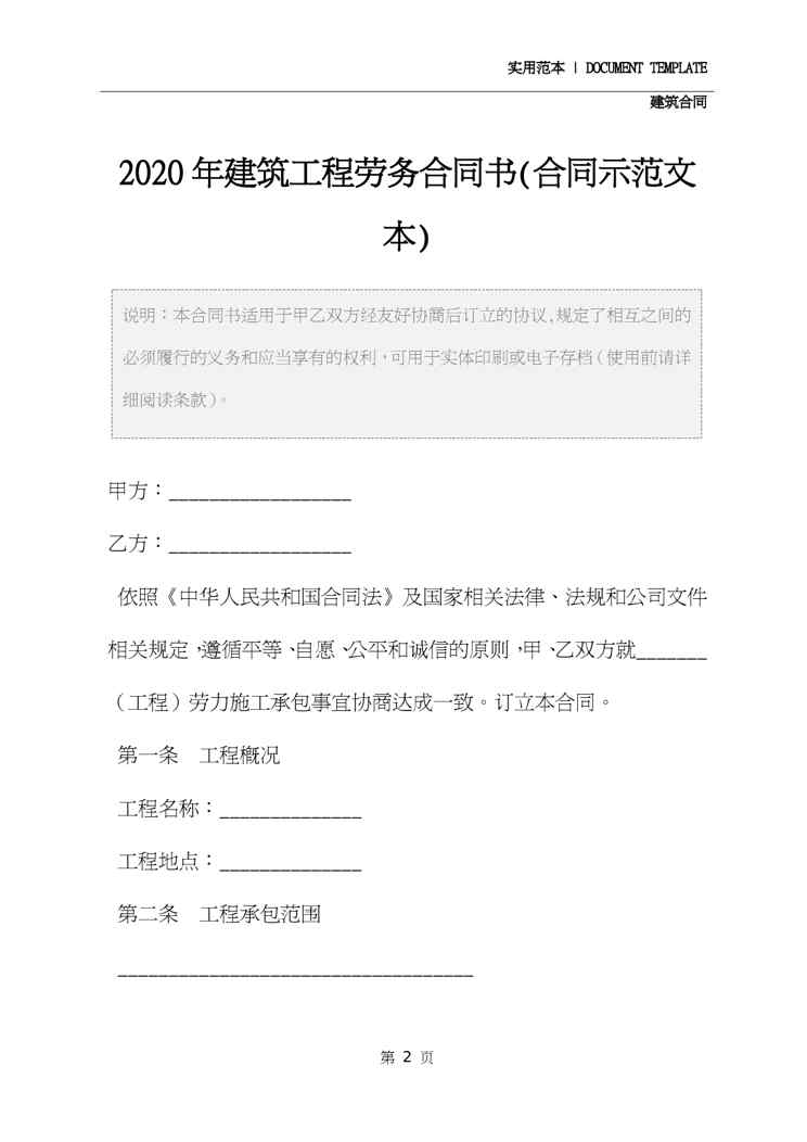 2020年建筑工程劳务合同书(合同示范文本)2020年建筑工程劳务合同书(合同示范文本)2020年建筑工程劳务合同书(合同示范文本)2020年建筑工程劳务合同书(合同示范文本)2020年建筑工程劳务合同书(合同示范文本)