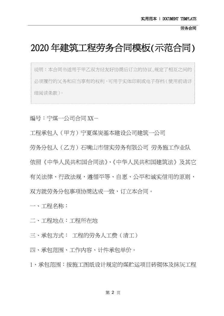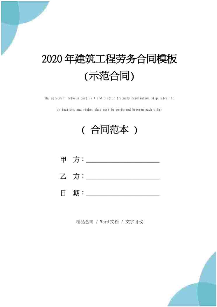 本站正式发布了《2020年建筑工程劳务合同模板(示范合同)》文档,文档详细内容可下载阅读。 声明:本站所有文章,如无特殊说明或标注,均为本站原创发布。任何个人或组织,在未征得本站同意时,禁止复制、盗用、采集、发布本站内容到任何网站、书籍等各类媒体平台。如若本站内容侵犯了原著者的合法权益,可联系我们进行处理。