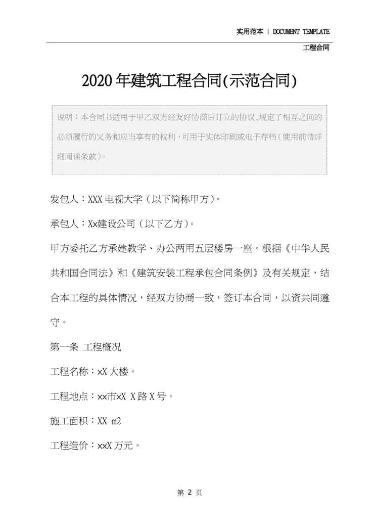 不久前,最新文档《2020年建筑工程合同(示范合同)》全文正式在本站发布,感兴趣的用户可以下载阅读。 声明:本站所有文章,如无特殊说明或标注,均为本站原创发布。任何个人或组织,在未征得本站同意时,禁止复制、盗用、采集、发布本站内容到任何网站、书籍等各类媒体平台。如若本站内容侵犯了原著者的合法权益,可联系我们进行处理。