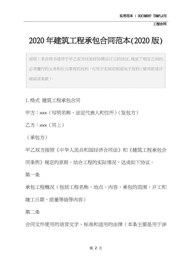 本站正式发布了《2020年建筑工程承包合同范本(2020版)》文档,文档详细内容可下载阅读。 声明:本站所有文章,如无特殊说明或标注,均为本站原创发布。任何个人或组织,在未征得本站同意时,禁止复制、盗用、采集、发布本站内容到任何网站、书籍等各类媒体平台。如若本站内容侵犯了原著者的合法权益,可联系我们进行处理。