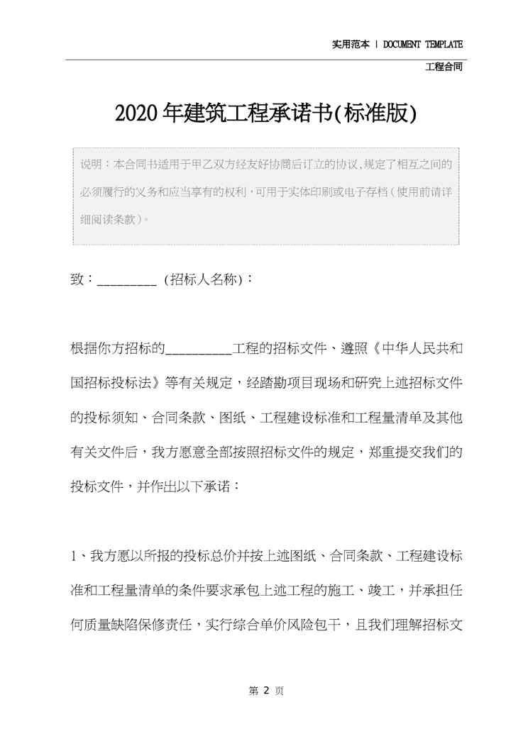 不久前,最新文档《2020年建筑工程承诺书(标准版)》全文正式在本站发布,感兴趣的用户可以下载阅读。 声明:本站所有文章,如无特殊说明或标注,均为本站原创发布。任何个人或组织,在未征得本站同意时,禁止复制、盗用、采集、发布本站内容到任何网站、书籍等各类媒体平台。如若本站内容侵犯了原著者的合法权益,可联系我们进行处理。