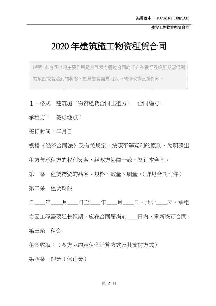 不久前,最新文档《2020年建筑施工物资租赁合同》全文正式在本站发布,感兴趣的用户可以下载阅读。 声明:本站所有文章,如无特殊说明或标注,均为本站原创发布。任何个人或组织,在未征得本站同意时,禁止复制、盗用、采集、发布本站内容到任何网站、书籍等各类媒体平台。如若本站内容侵犯了原著者的合法权益,可联系我们进行处理。