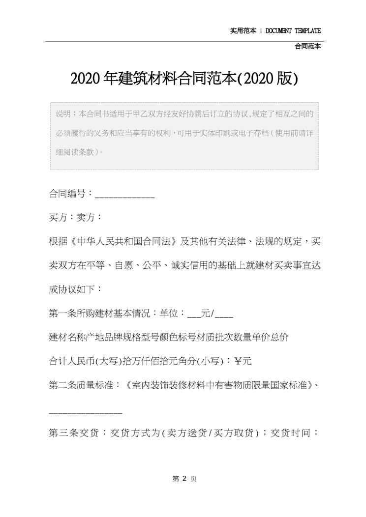 本站正式发布了《2020年建筑材料合同范本(2020版)》文档,文档详细内容可下载阅读。 声明:本站所有文章,如无特殊说明或标注,均为本站原创发布。任何个人或组织,在未征得本站同意时,禁止复制、盗用、采集、发布本站内容到任何网站、书籍等各类媒体平台。如若本站内容侵犯了原著者的合法权益,可联系我们进行处理。