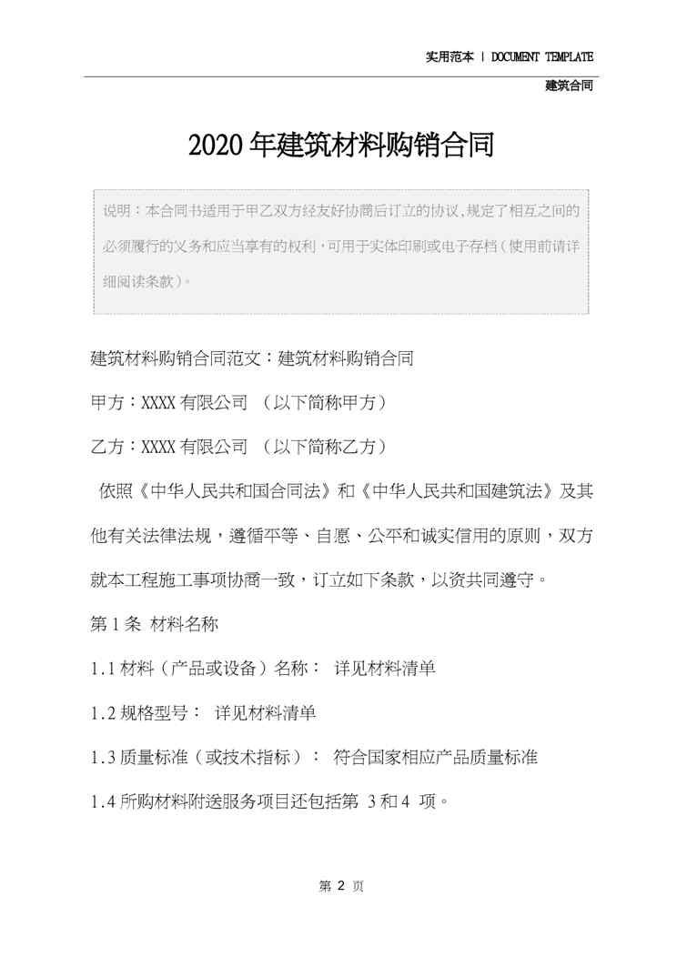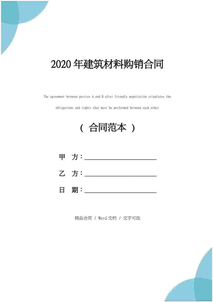 本站正式发布了《2020年建筑材料购销合同》文档,文档详细内容可下载阅读。 声明:本站所有文章,如无特殊说明或标注,均为本站原创发布。任何个人或组织,在未征得本站同意时,禁止复制、盗用、采集、发布本站内容到任何网站、书籍等各类媒体平台。如若本站内容侵犯了原著者的合法权益,可联系我们进行处理。
