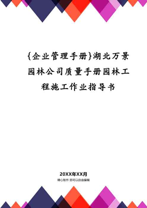 不久前,最新文档《{企业管理手册}湖北万景园林公司质量手册园林工程施工作业指导书》全文正式在本站发布,感兴趣的用户可以下载阅读。 声明:本站所有文章,如无特殊说明或标注,均为本站原创发布。任何个人或组织,在未征得本站同意时,禁止复制、盗用、采集、发布本站内容到任何网站、书籍等各类媒体平台。如若本站内容侵犯了原著者的合法权益,可联系我们进行处理。