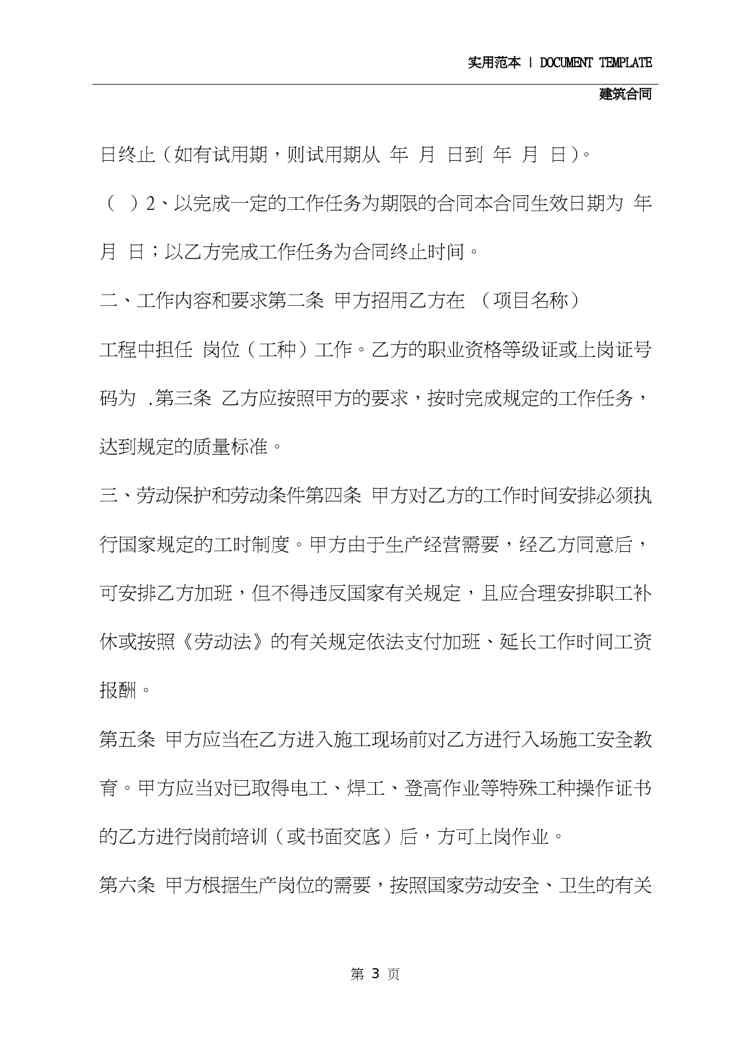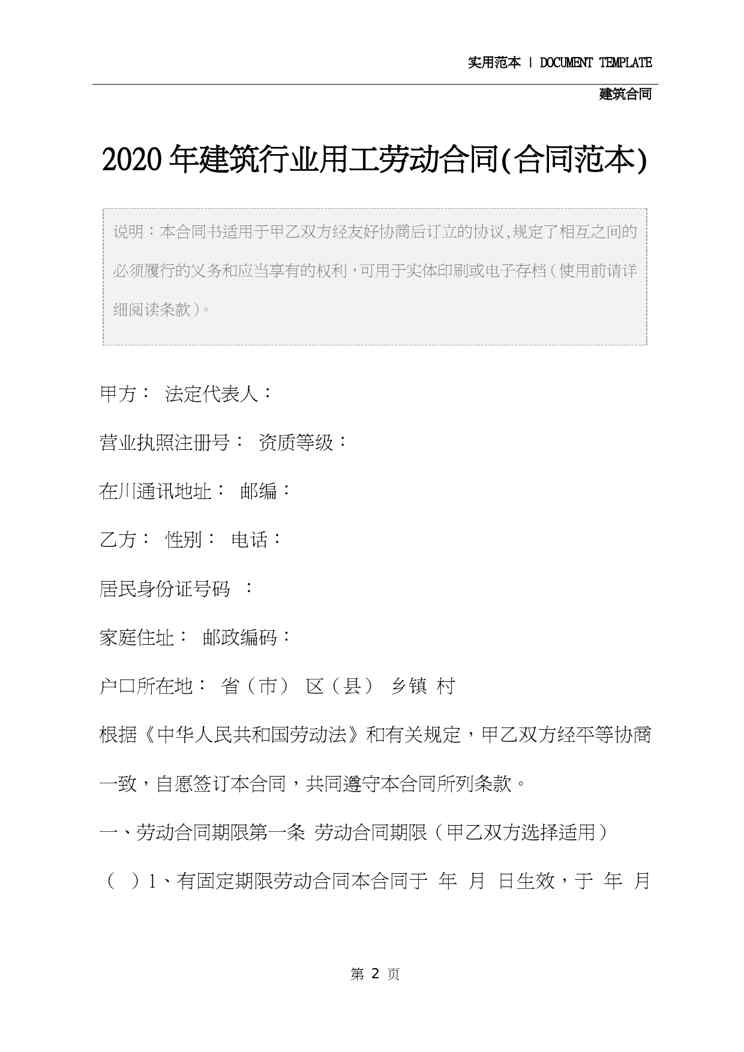 不久前,最新文档《2020年建筑行业用工劳动合同(合同范本)》全文正式在本站发布,感兴趣的用户可以下载阅读。 声明:本站所有文章,如无特殊说明或标注,均为本站原创发布。任何个人或组织,在未征得本站同意时,禁止复制、盗用、采集、发布本站内容到任何网站、书籍等各类媒体平台。如若本站内容侵犯了原著者的合法权益,可联系我们进行处理。