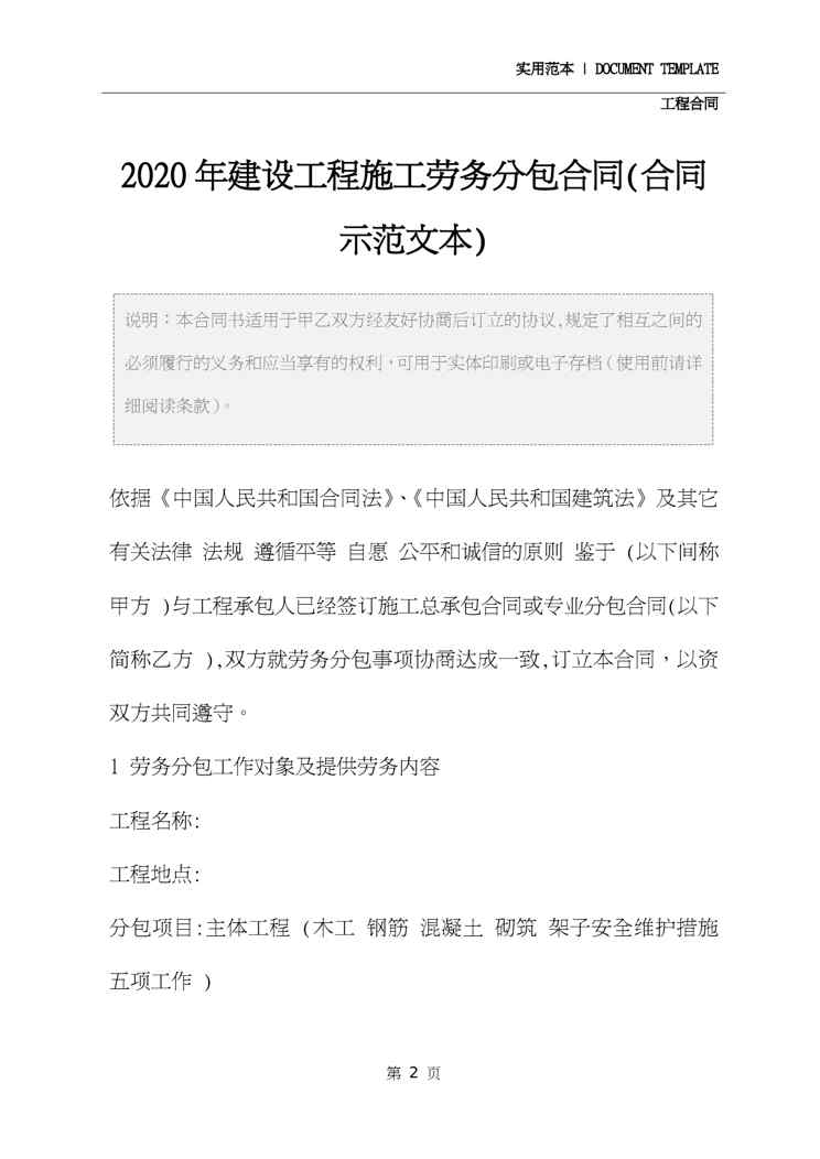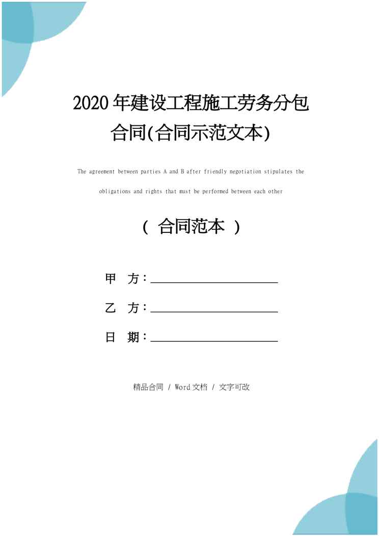 本站资深用户发布了最新的《2020年建设工程施工劳务分包合同(合同示范文本)》文档,以下内容为预览,详细内容可下载阅读。 声明:本站所有文章,如无特殊说明或标注,均为本站原创发布。任何个人或组织,在未征得本站同意时,禁止复制、盗用、采集、发布本站内容到任何网站、书籍等各类媒体平台。如若本站内容侵犯了原著者的合法权益,可联系我们进行处理。