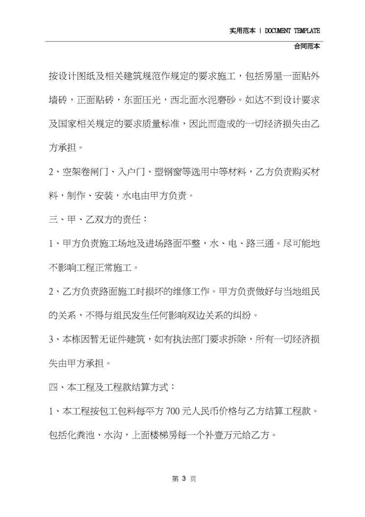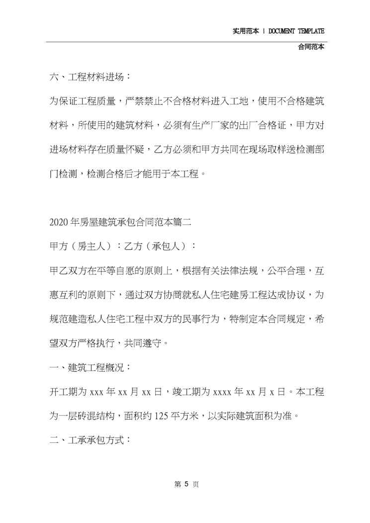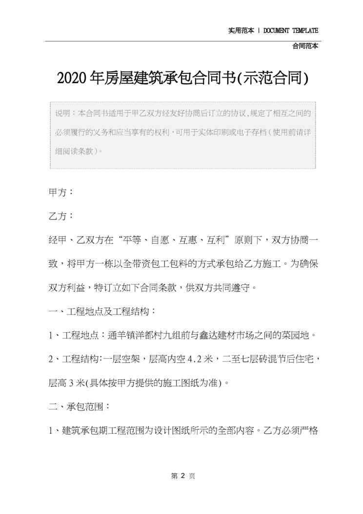 本站正式发布了《2020年房屋建筑承包合同书(示范合同)》文档,文档详细内容可下载阅读。 声明:本站所有文章,如无特殊说明或标注,均为本站原创发布。任何个人或组织,在未征得本站同意时,禁止复制、盗用、采集、发布本站内容到任何网站、书籍等各类媒体平台。如若本站内容侵犯了原著者的合法权益,可联系我们进行处理。