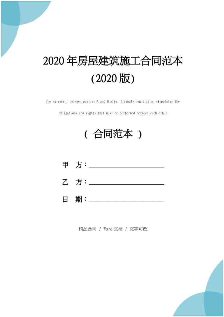 本站资深用户发布了最新的《2020年房屋建筑施工合同范本(2020版)》文档,以下内容为预览,详细内容可下载阅读。 声明:本站所有文章,如无特殊说明或标注,均为本站原创发布。任何个人或组织,在未征得本站同意时,禁止复制、盗用、采集、发布本站内容到任何网站、书籍等各类媒体平台。如若本站内容侵犯了原著者的合法权益,可联系我们进行处理。