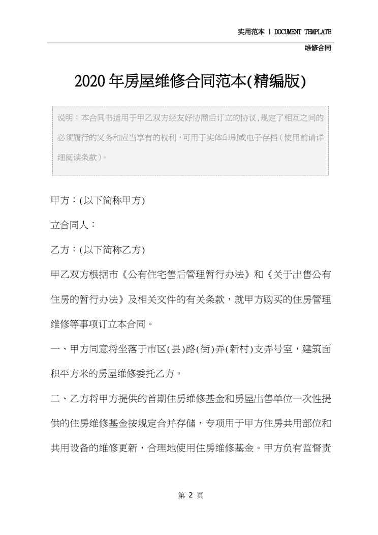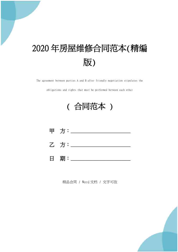 2020年房屋维修合同范本(精编版)2020年房屋维修合同范本(精编版)2020年房屋维修合同范本(精编版)2020年房屋维修合同范本(精编版)