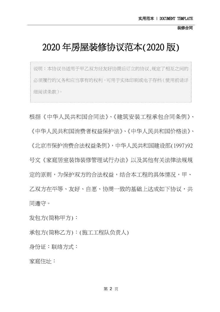 不久前,最新文档《2020年房屋装修协议范本(2020版)》全文正式在本站发布,感兴趣的用户可以下载阅读。 声明:本站所有文章,如无特殊说明或标注,均为本站原创发布。任何个人或组织,在未征得本站同意时,禁止复制、盗用、采集、发布本站内容到任何网站、书籍等各类媒体平台。如若本站内容侵犯了原著者的合法权益,可联系我们进行处理。