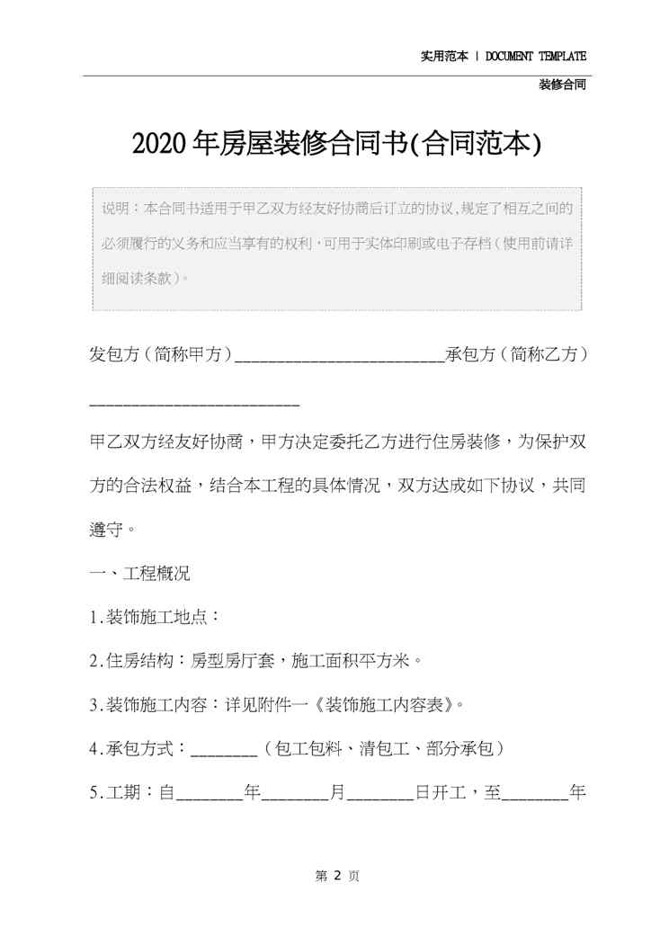 本站资深用户发布了最新的《2020年房屋装修合同书(合同范本)》文档,以下内容为预览,详细内容可下载阅读。 声明:本站所有文章,如无特殊说明或标注,均为本站原创发布。任何个人或组织,在未征得本站同意时,禁止复制、盗用、采集、发布本站内容到任何网站、书籍等各类媒体平台。如若本站内容侵犯了原著者的合法权益,可联系我们进行处理。