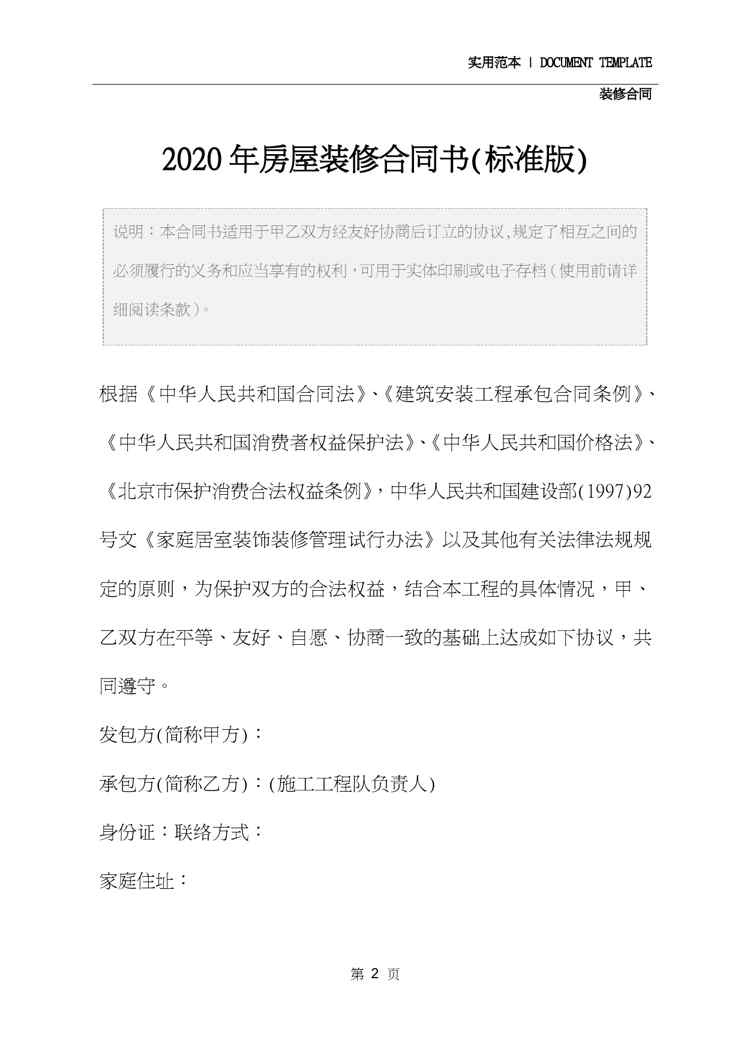 本站资深用户发布了最新的《2020年房屋装修合同书(标准版)》文档,以下内容为预览,详细内容可下载阅读。 声明:本站所有文章,如无特殊说明或标注,均为本站原创发布。任何个人或组织,在未征得本站同意时,禁止复制、盗用、采集、发布本站内容到任何网站、书籍等各类媒体平台。如若本站内容侵犯了原著者的合法权益,可联系我们进行处理。