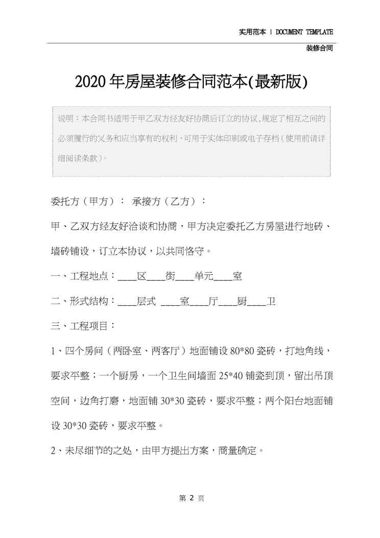 不久前,最新文档《2020年房屋装修合同范本(最新版)》全文正式在本站发布,感兴趣的用户可以下载阅读。 声明:本站所有文章,如无特殊说明或标注,均为本站原创发布。任何个人或组织,在未征得本站同意时,禁止复制、盗用、采集、发布本站内容到任何网站、书籍等各类媒体平台。如若本站内容侵犯了原著者的合法权益,可联系我们进行处理。