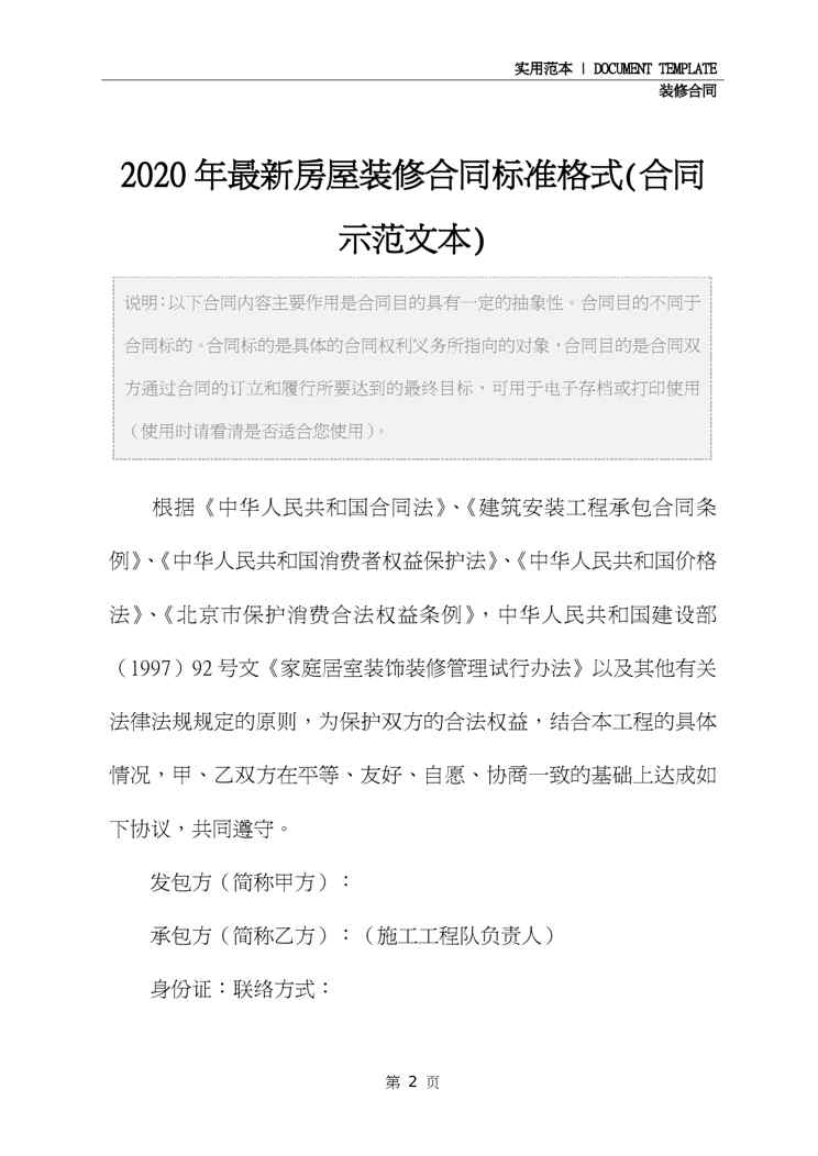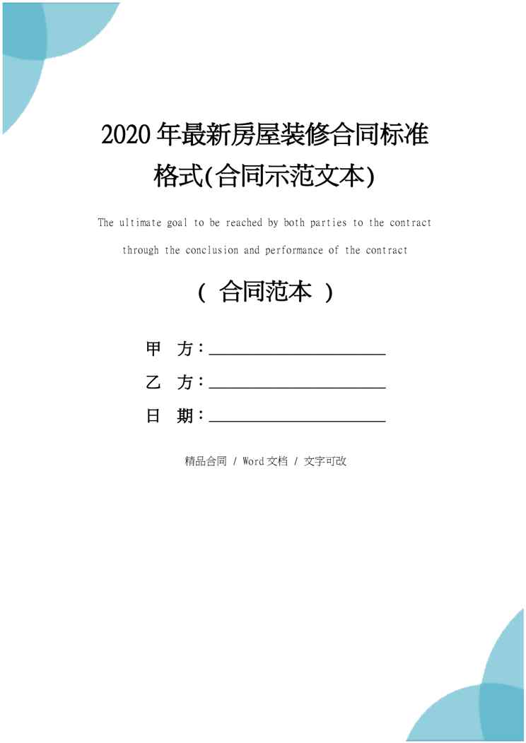 本站资深用户发布了最新的《2020年最新房屋装修合同标准格式(合同示范文本)》文档,以下内容为预览,详细内容可下载阅读。 声明:本站所有文章,如无特殊说明或标注,均为本站原创发布。任何个人或组织,在未征得本站同意时,禁止复制、盗用、采集、发布本站内容到任何网站、书籍等各类媒体平台。如若本站内容侵犯了原著者的合法权益,可联系我们进行处理。