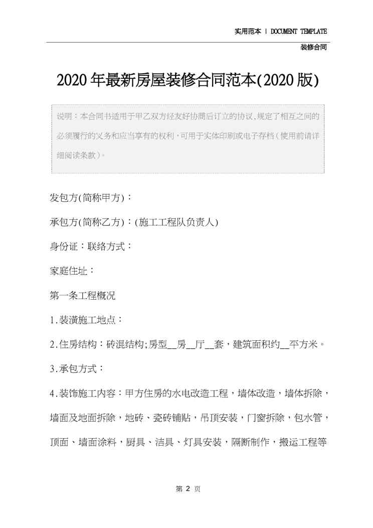 本站资深用户发布了最新的《2020年最新房屋装修合同范本(2020版)》文档,以下内容为预览,详细内容可下载阅读。 声明:本站所有文章,如无特殊说明或标注,均为本站原创发布。任何个人或组织,在未征得本站同意时,禁止复制、盗用、采集、发布本站内容到任何网站、书籍等各类媒体平台。如若本站内容侵犯了原著者的合法权益,可联系我们进行处理。