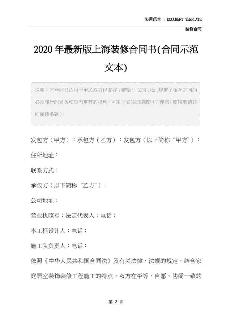 2020年最新版上海装修合同书(合同示范文本)2020年最新版上海装修合同书(合同示范文本)2020年最新版上海装修合同书(合同示范文本)2020年最新版上海装修合同书(合同示范文本)2020年最新版上海装修合同书(合同示范文本)