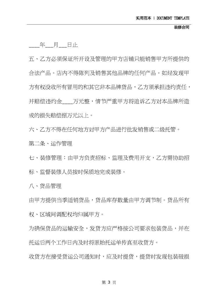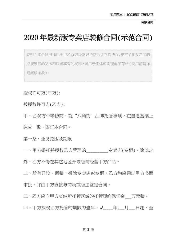 不久前,最新文档《2020年最新版专卖店装修合同(示范合同)》全文正式在本站发布,感兴趣的用户可以下载阅读。 声明:本站所有文章,如无特殊说明或标注,均为本站原创发布。任何个人或组织,在未征得本站同意时,禁止复制、盗用、采集、发布本站内容到任何网站、书籍等各类媒体平台。如若本站内容侵犯了原著者的合法权益,可联系我们进行处理。
