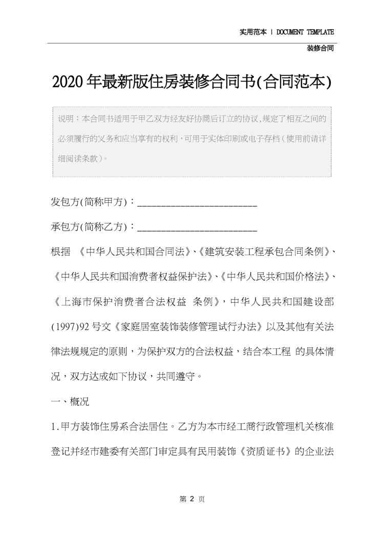 本站正式发布了《2020年最新版住房装修合同书(合同范本)》文档,文档详细内容可下载阅读。 声明:本站所有文章,如无特殊说明或标注,均为本站原创发布。任何个人或组织,在未征得本站同意时,禁止复制、盗用、采集、发布本站内容到任何网站、书籍等各类媒体平台。如若本站内容侵犯了原著者的合法权益,可联系我们进行处理。