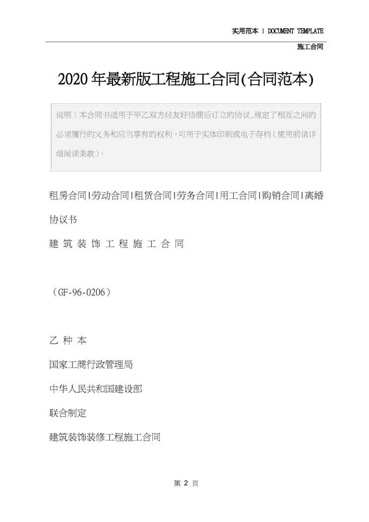 本站资深用户发布了最新的《2020年最新版工程施工合同(合同范本)》文档,以下内容为预览,详细内容可下载阅读。 声明:本站所有文章,如无特殊说明或标注,均为本站原创发布。任何个人或组织,在未征得本站同意时,禁止复制、盗用、采集、发布本站内容到任何网站、书籍等各类媒体平台。如若本站内容侵犯了原著者的合法权益,可联系我们进行处理。