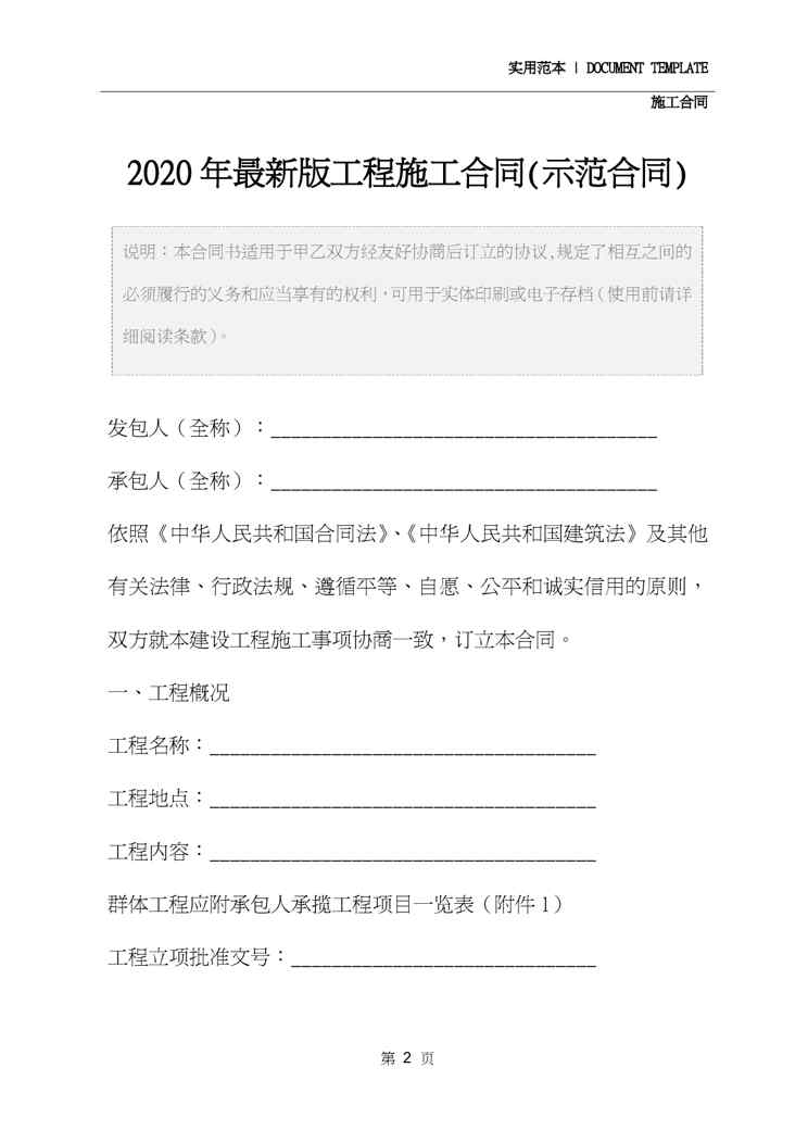 本站资深用户发布了最新的《2020年最新版工程施工合同(示范合同)》文档,以下内容为预览,详细内容可下载阅读。 声明:本站所有文章,如无特殊说明或标注,均为本站原创发布。任何个人或组织,在未征得本站同意时,禁止复制、盗用、采集、发布本站内容到任何网站、书籍等各类媒体平台。如若本站内容侵犯了原著者的合法权益,可联系我们进行处理。