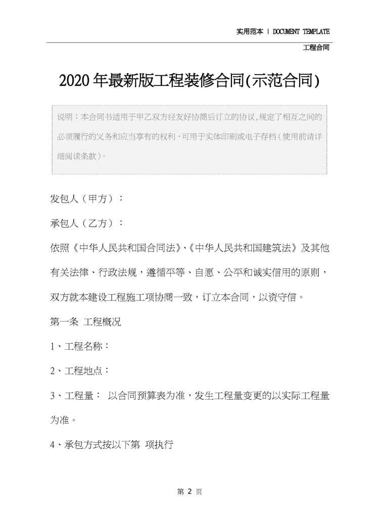 不久前,最新文档《2020年最新版工程装修合同(示范合同)》全文正式在本站发布,感兴趣的用户可以下载阅读。 声明:本站所有文章,如无特殊说明或标注,均为本站原创发布。任何个人或组织,在未征得本站同意时,禁止复制、盗用、采集、发布本站内容到任何网站、书籍等各类媒体平台。如若本站内容侵犯了原著者的合法权益,可联系我们进行处理。