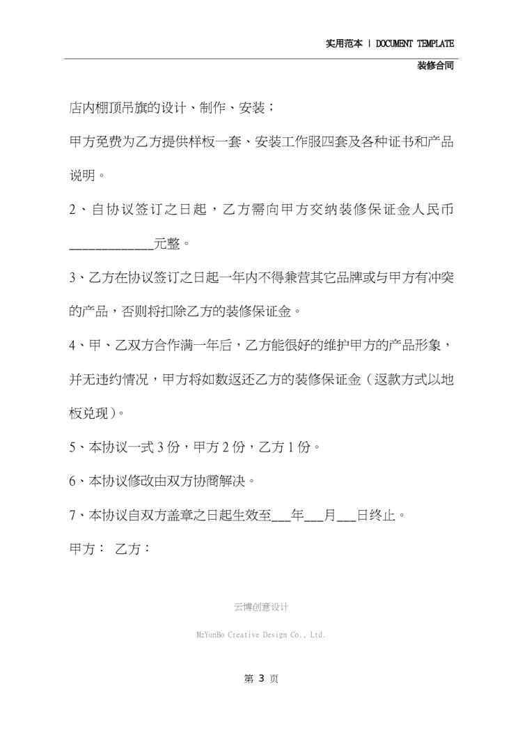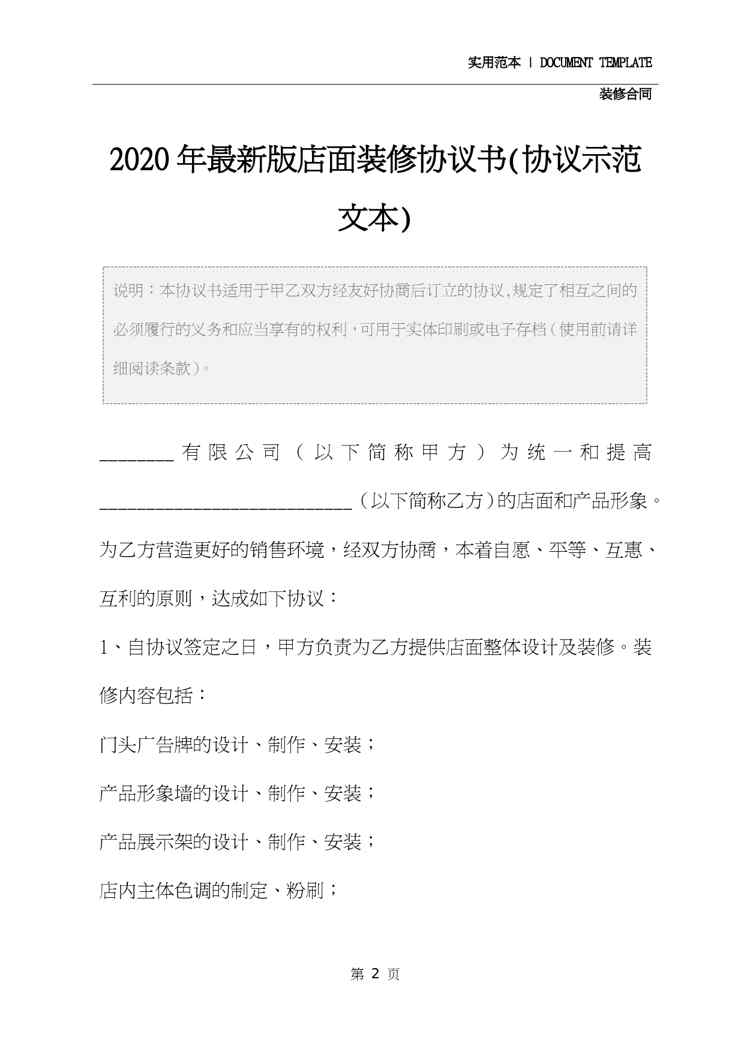 不久前,最新文档《2020年最新版店面装修协议书(协议示范文本)》全文正式在本站发布,感兴趣的用户可以下载阅读。 声明:本站所有文章,如无特殊说明或标注,均为本站原创发布。任何个人或组织,在未征得本站同意时,禁止复制、盗用、采集、发布本站内容到任何网站、书籍等各类媒体平台。如若本站内容侵犯了原著者的合法权益,可联系我们进行处理。
