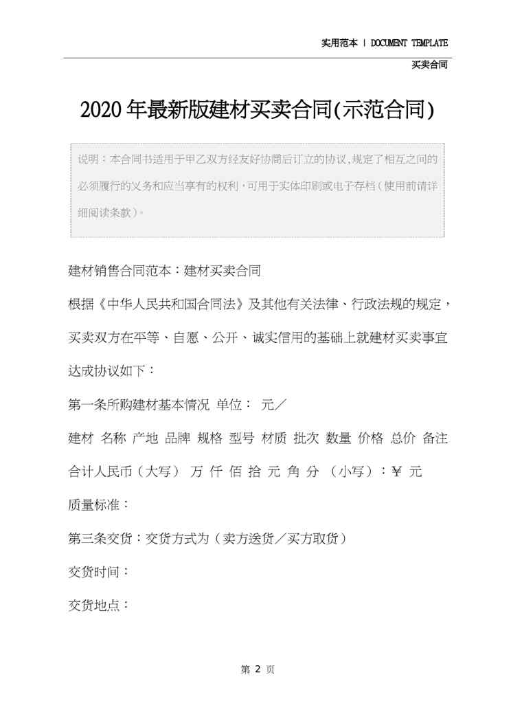 本站资深用户发布了最新的《2020年最新版建材买卖合同(示范合同)》文档,以下内容为预览,详细内容可下载阅读。 声明:本站所有文章,如无特殊说明或标注,均为本站原创发布。任何个人或组织,在未征得本站同意时,禁止复制、盗用、采集、发布本站内容到任何网站、书籍等各类媒体平台。如若本站内容侵犯了原著者的合法权益,可联系我们进行处理。