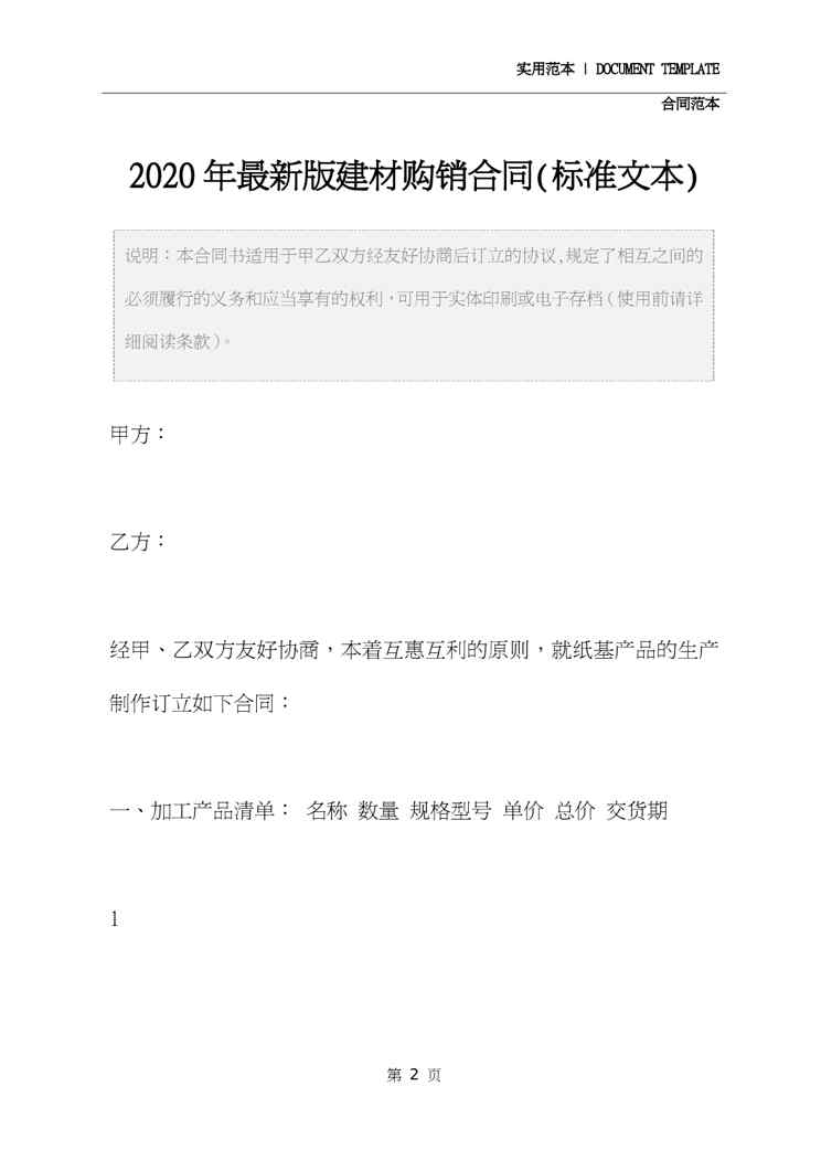 本站资深用户发布了最新的《2020年最新版建材购销合同(标准文本)》文档,以下内容为预览,详细内容可下载阅读。 声明:本站所有文章,如无特殊说明或标注,均为本站原创发布。任何个人或组织,在未征得本站同意时,禁止复制、盗用、采集、发布本站内容到任何网站、书籍等各类媒体平台。如若本站内容侵犯了原著者的合法权益,可联系我们进行处理。